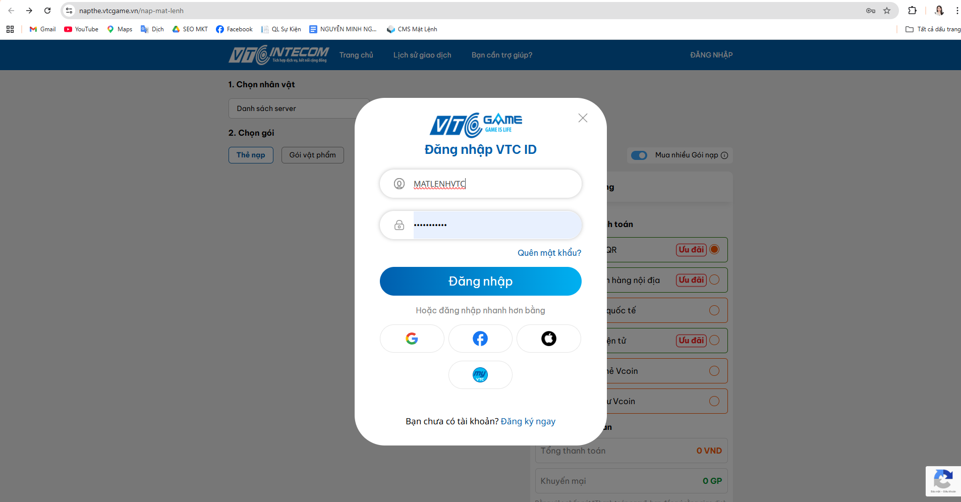 Bước 2: Đăng nhập bằng tài khoản VTC mà bạn đã đăng nhập vào game