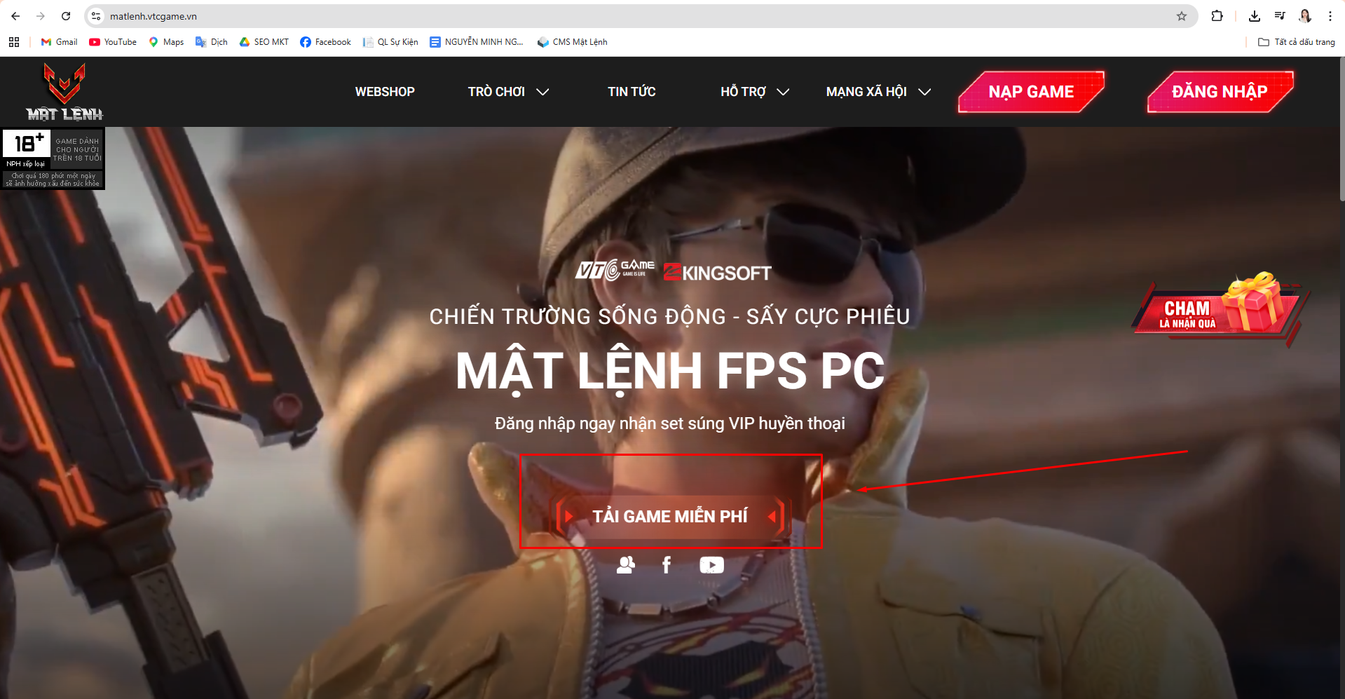 Bước 1: Truy cập trang chủ "matlenh.vtcgame.vn" và Click chuột vào nút Tải game miễn phí ngay tại đầu trang