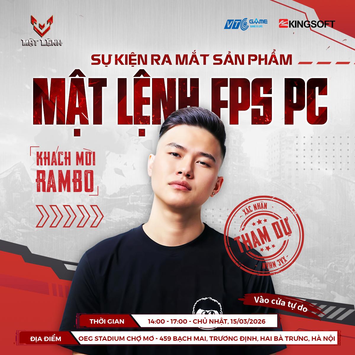 Game thủ FPS tại Hà Nội chuẩn bị sẵn sàng! Sự kiện ra mắt chính thức của Mật Lệnh FPS PC sẽ diễn ra vào 14h00 ngày 15/3/2026 tại OEG Stadium – 459 Bạch Mai. Đây là cơ hội để cộng đồng game thủ trải nghiệm sớm tựa game bắn súng mới, nhận quà miễn phí thả ga, giao lưu cùng Hot Streamer trong làng game và tham gia các hoạt động thi đấu hấp dẫn.